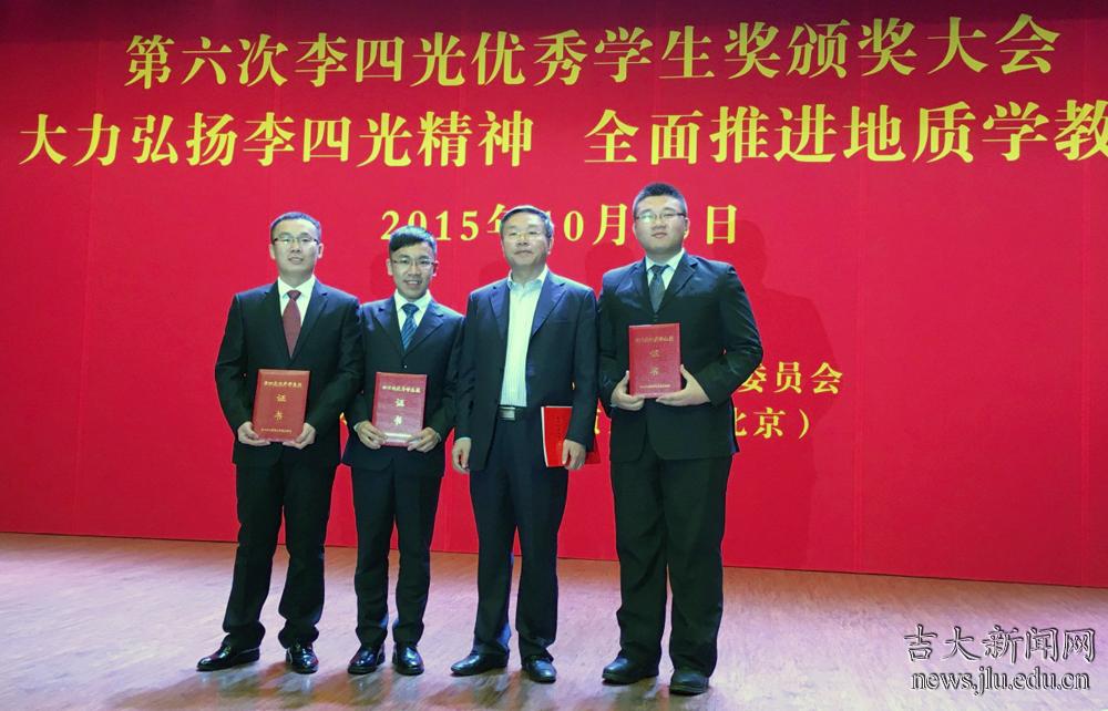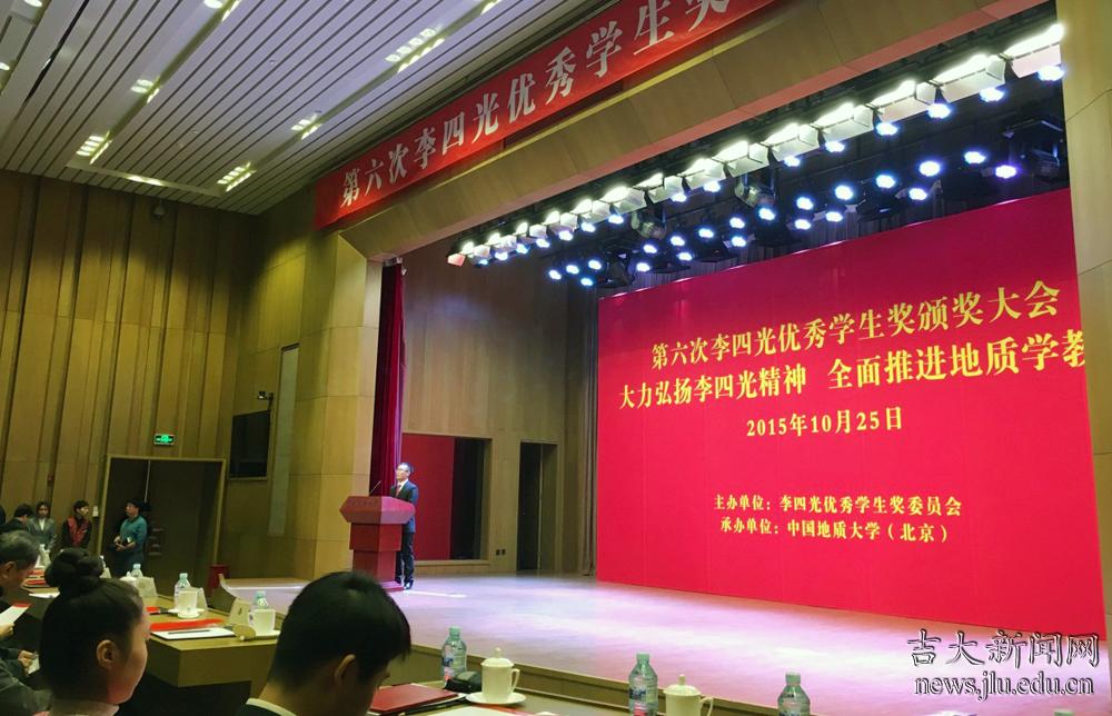 2015年10月25日,李四光优秀学生奖颁奖大会在中国地质大学举行。国土资源部党组书记、部长姜大明,国土资源部原总工程师张洪涛,国土资源部科技与国际合作司司长姜建军,中国地质科学院党委书记、副院长王小烈,中国科学院院士、北京大学副校长高松,中国科学院院士莫宣学,教育部科技司副司长雷朝滋,中国地质大学(北京)党委书记王鸿冰,中国地质大学(北京)校长邓军,台湾a片