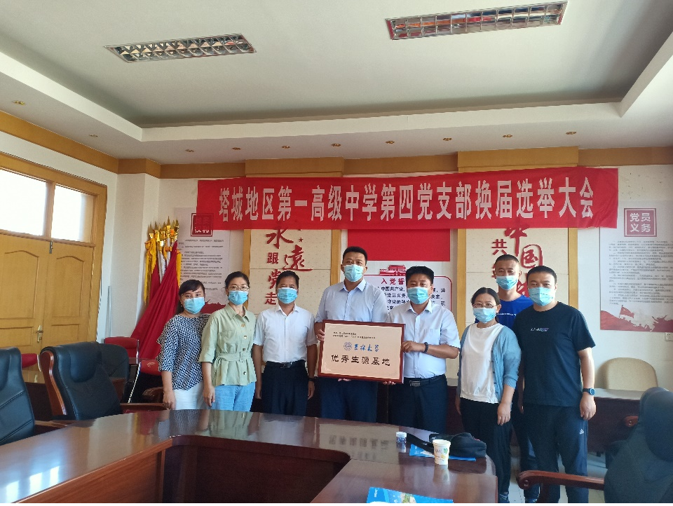 优秀生源基地授牌仪式。塔地一高党委书记张旭光、高三年级组、人事处、教研处、德育处相关老师出席了此次仪式。