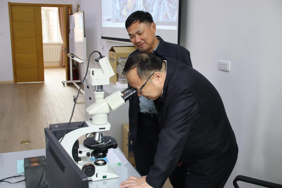 鸽子楼,韩喜平副书记在学院党委书记杨洲和院长单玄龙的陪同下,参观了东北亚矿产资源评价自然资源部重点实验室、地球演化综合实验室、岩矿综合实验室,学院领导介绍了XRF、ICP-MS主、微量地球化学与LA-ICP-MS年代学分析仪器的应用领域以及近年来学院利用上述仪器取得的重要研究成果。韩书记详细了解实践教学开展情况,高度肯定了学院的实践教学工作。