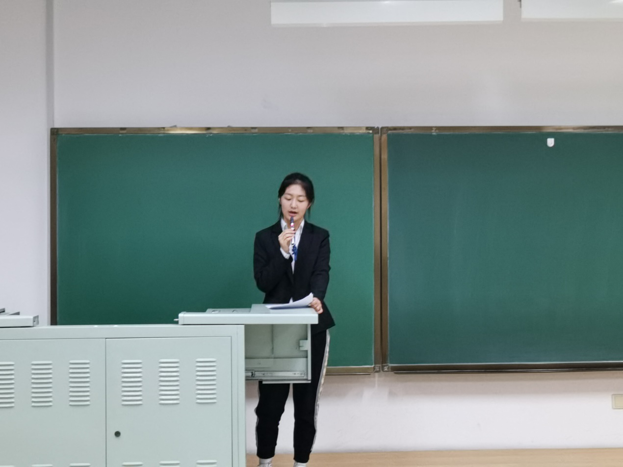 最后,2021级辅导员韩旭老师讲话。她对新任班委提出了所需的素质:思想道德素质、能力素质、人文素质、心理素质和身体素质,明确了各个班委岗位的管理范围,强调了班委在协调班集体中的重要作用,提倡各班委发扬奉献精神,以班级利益为重,使班集体拧成一股绳,劲往一处使,在实践中提高能力,化压力为动力,把班级建设为优秀的班集体,把学院建设为院风正、学风浓、相亲相爱的大家庭,为台湾a片