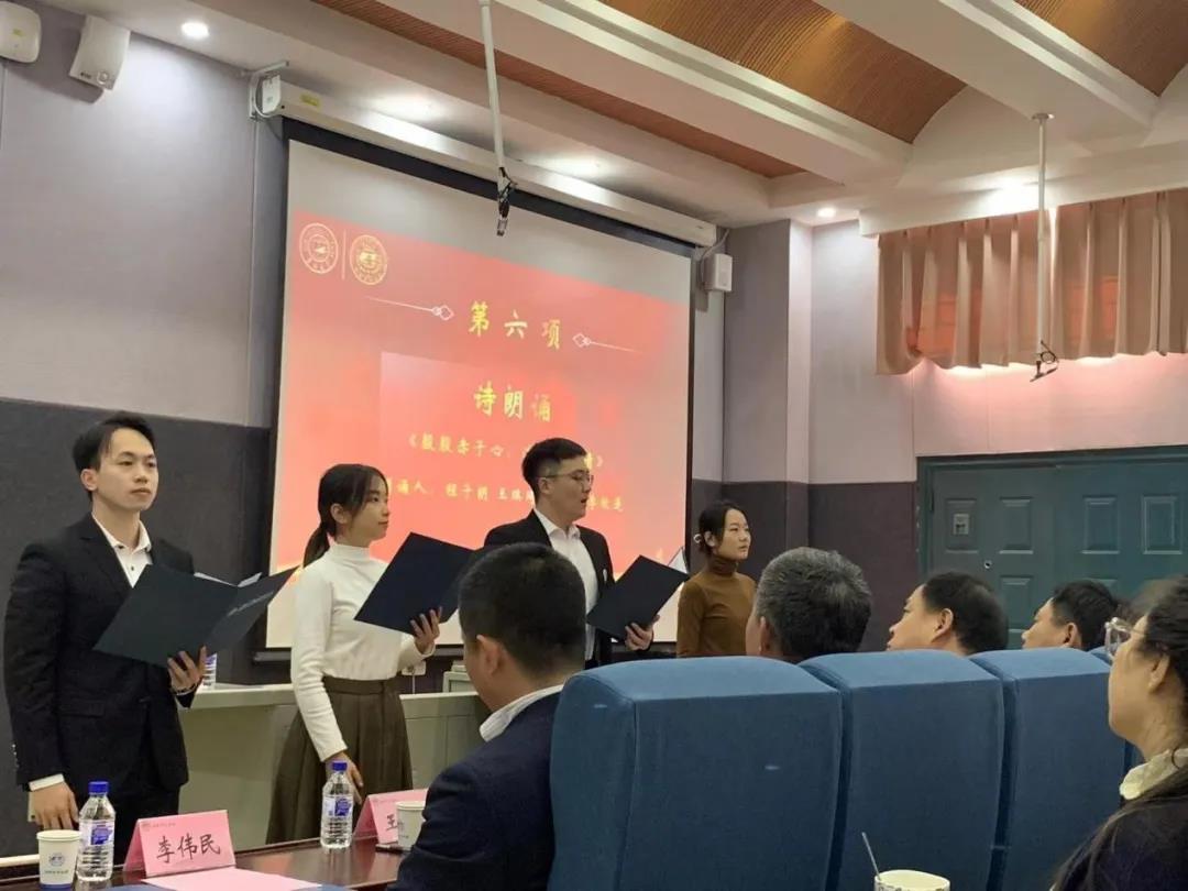随后,土地资源管理专业2020级程子朗、赵博轩,2021级王瑞琦、李欣遥4位同学为在场师生带来了深情饱满的诗朗诵《殷殷赤子心,浓浓地质情》。抒发了同学们对地质行业的深深热爱之情,道出了同学们对学校、学院辛勤培育学生成长成才的深深感激之情。