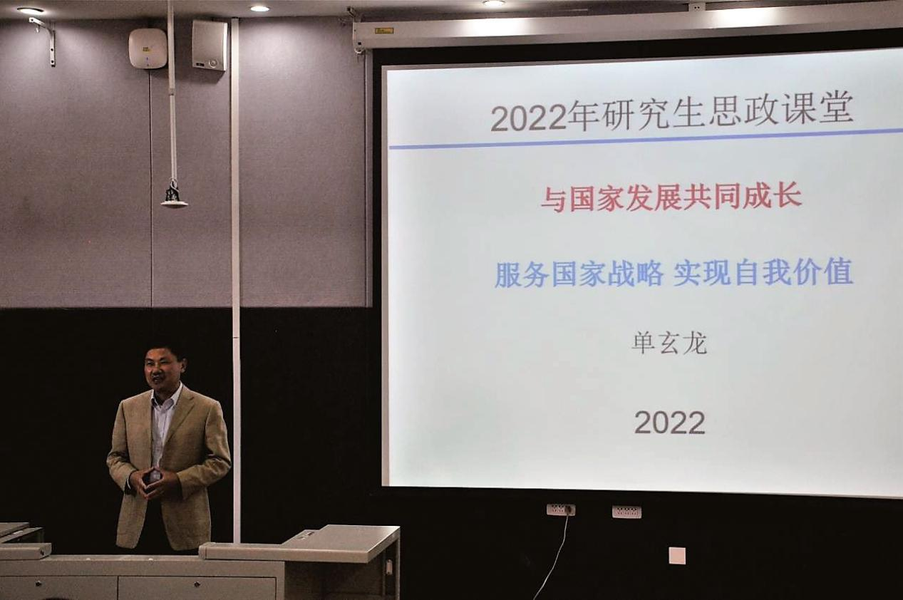 院长单玄龙教授在鸽子楼125阶梯教室为学院2022级研究生讲授了以“与国家发展共同成长——服务国家战略,实现自我价值”为主题的研究生“开学第一课”,活动由学院党委副书记马旭主持。