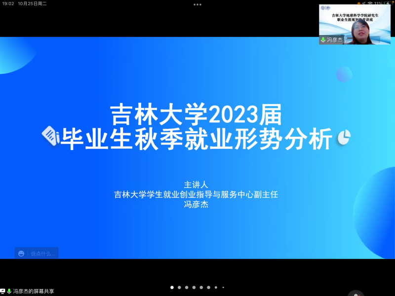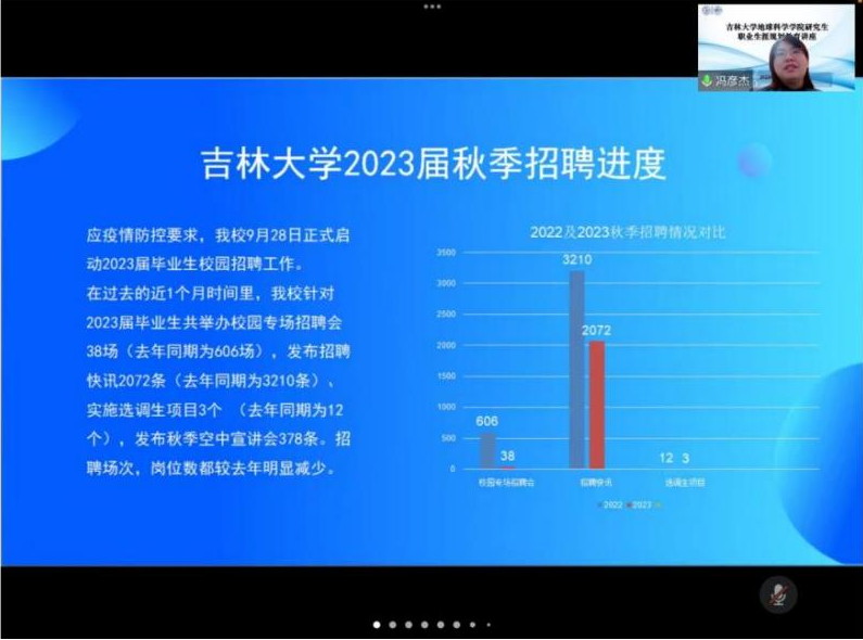 2023届毕业生秋季就业形式分析”为题,为学院157名研究生新生线上讲授了一场以就业数据分析为基础,案例分析为辅导,实战经验丰富的职业生涯规划教育讲座。本次活动由学院党委副书记马旭主持。