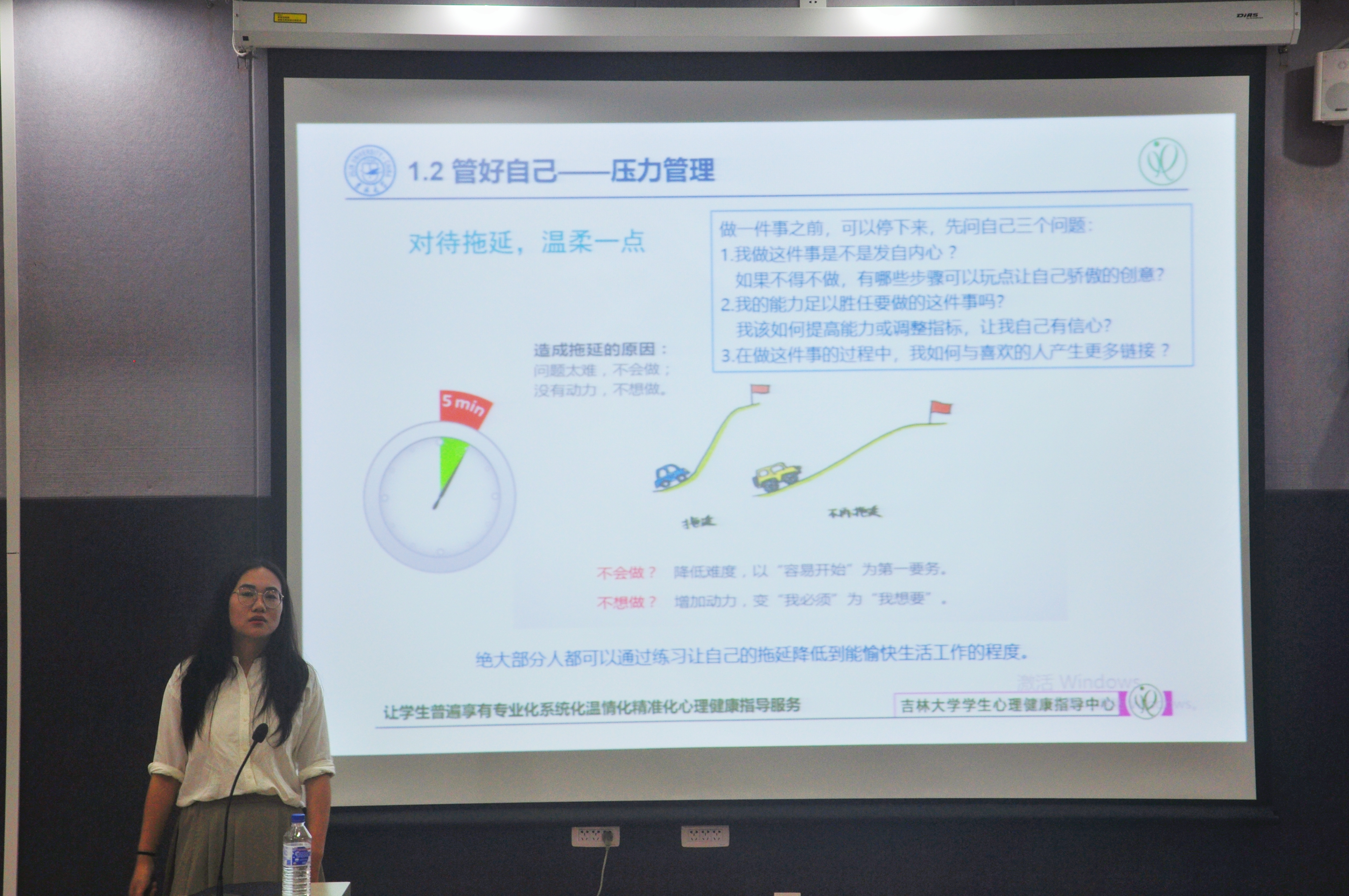 随后,张老师围绕心理健康知识的宣传普及、研究生心理健康的影响因素、增进心理健康的策略、学校的心理健康指导服务等内容,从“管理好自己”、“利用好资源”两个方面展开,强调了目标管理、压力管理和时间管理的重要性和意义,给出了如何利用知识资源、人际资源和专业资源的宝贵建议。最后,张老师呼吁同学们在遇到难以解决的心理问题时,应主动寻求帮助,借助专业的力量,台湾a片