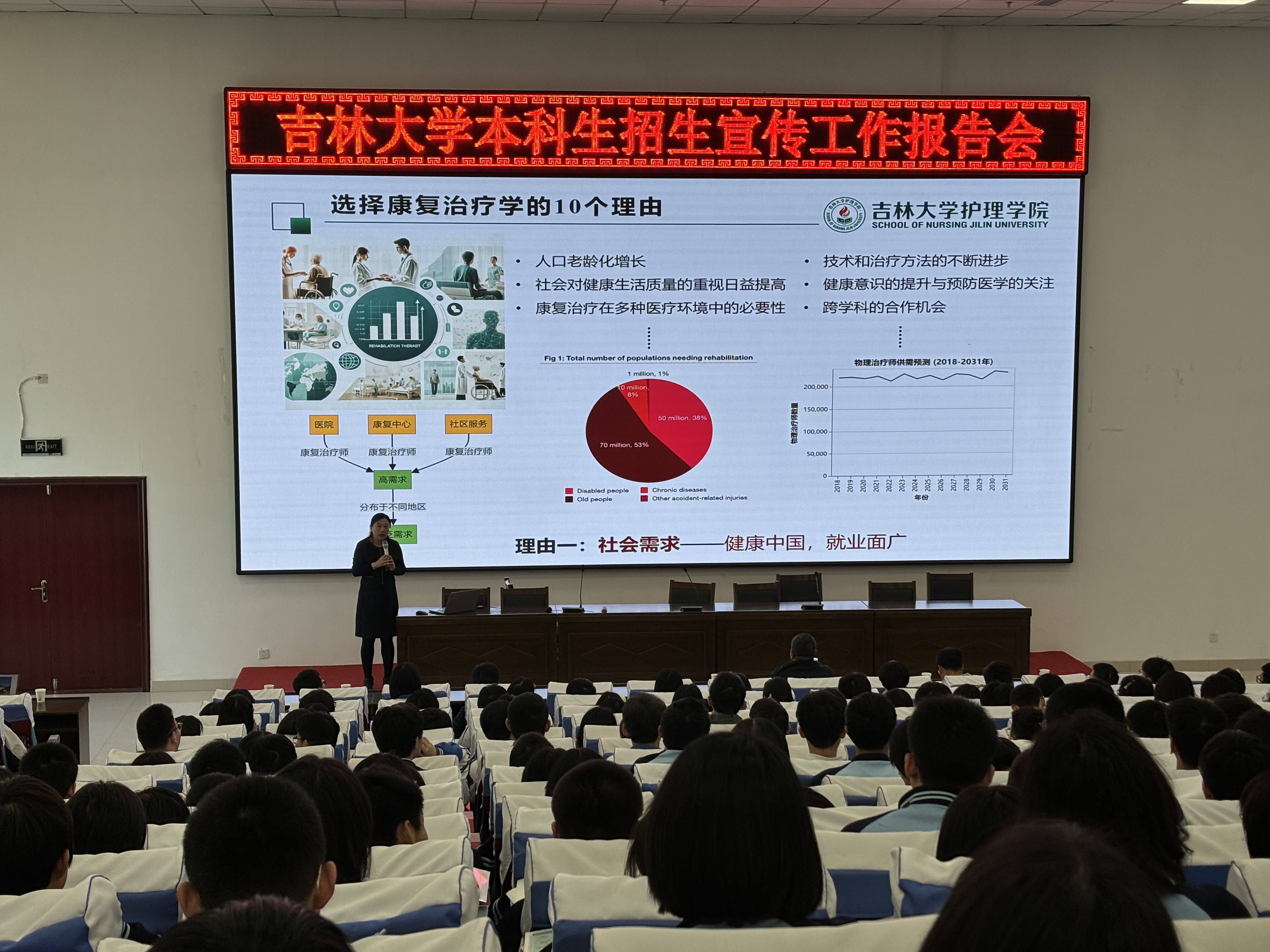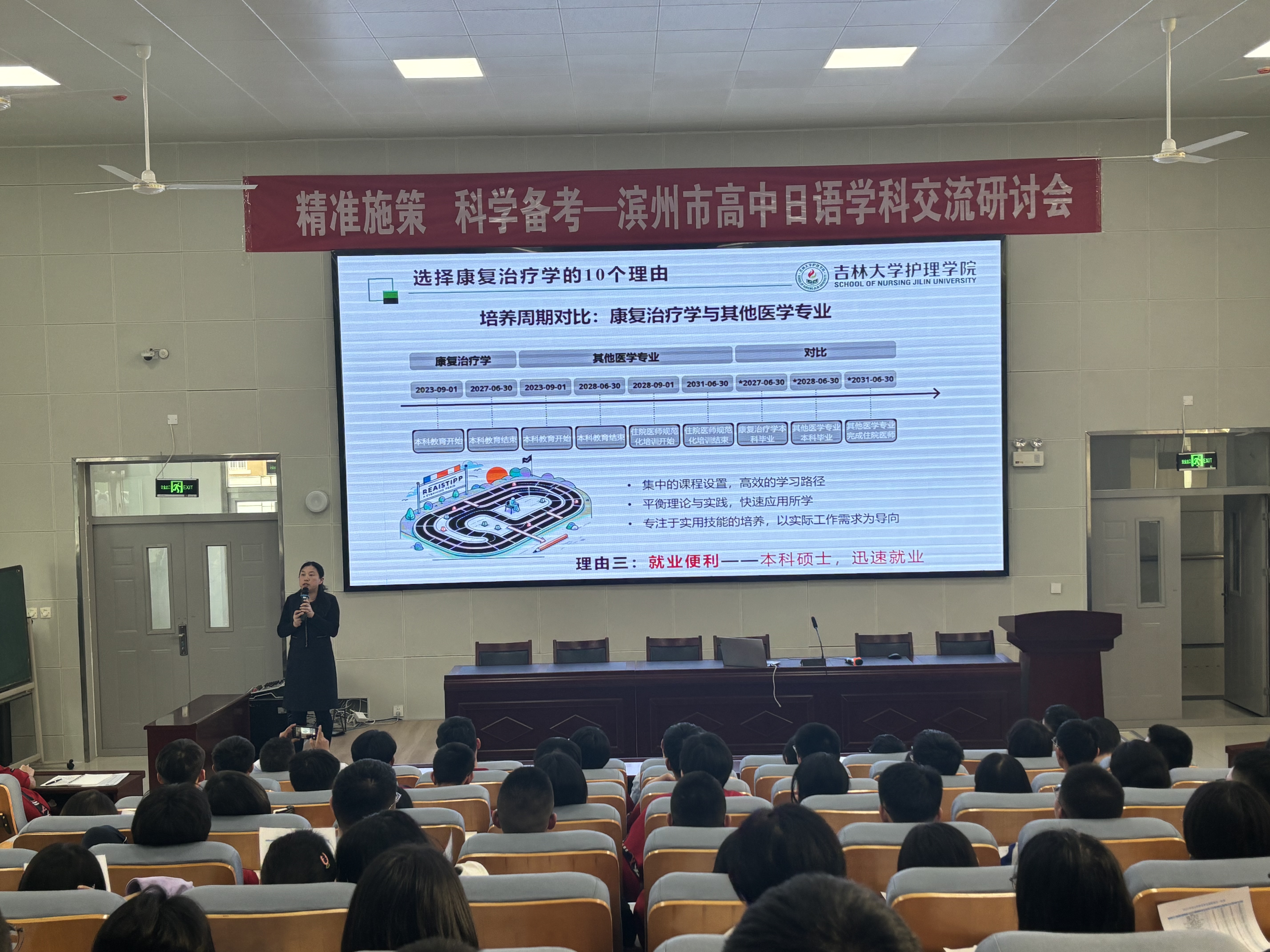 。张爽副教授以护理学院为例,详细介绍了护理专业的课程设置、实践教学及就业方向。她通过生动的案例和丰富的数据,让同学们对护理专业有了更加全面和深入的了解。孙平昌教授以“宜居地球与资源强国”为题,为同学们带来了一场精彩的科普讲座。他结合当前国家发展战略和地球科学前沿研究成果,阐述了地球科学在推动社会进步和可持续发展中的重要作用。讲座现场气氛热烈,同学们纷纷表示受益匪浅。