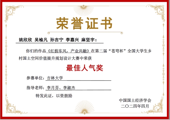 代表队与北京师范大学代表队、中国地质大学(北京)代表队、东北农业大学代表队等15支队伍同组竞技。经作品展示、汇报、答辩和专家点评等环节,我校选手表现出较高的专业水准、临场应辩能力和良好的精神风貌,最终荣获三项佳绩。学子们不仅在大赛中展现了扎实的专业素养和创新能力,同时也通过大赛的锻炼,显著地提高了专业技能;而学子们的优秀作品,则为乡村国土空间价值的提升提供了宝贵的思路和方案。
