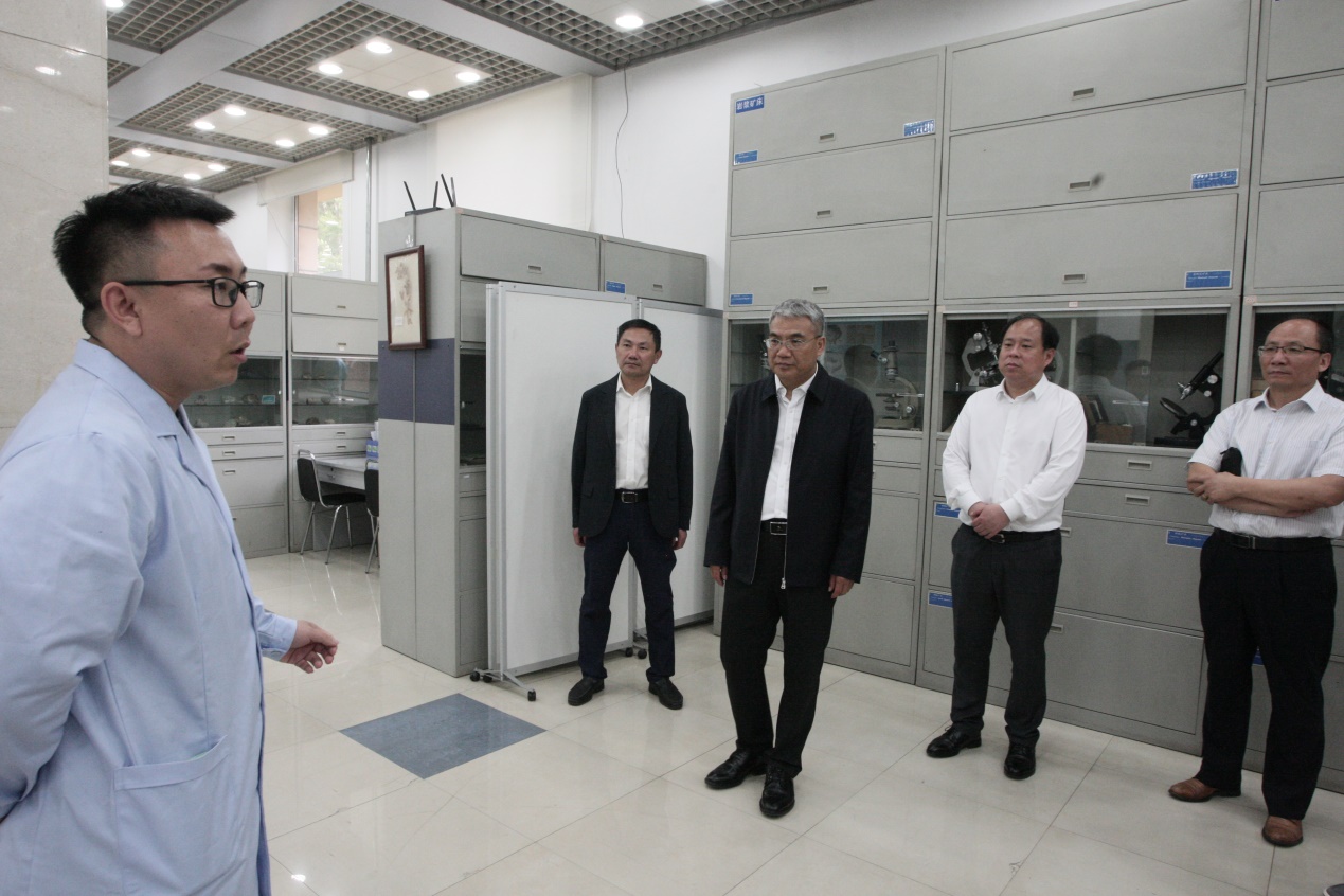 任云生一行首先来到自然资源部东北亚矿产资源评价重点实验室,参观了实验仪器、信息化储存设备和实验室净化系统。他对各项仪器性能及对科研支撑的成效进行了详细了解。