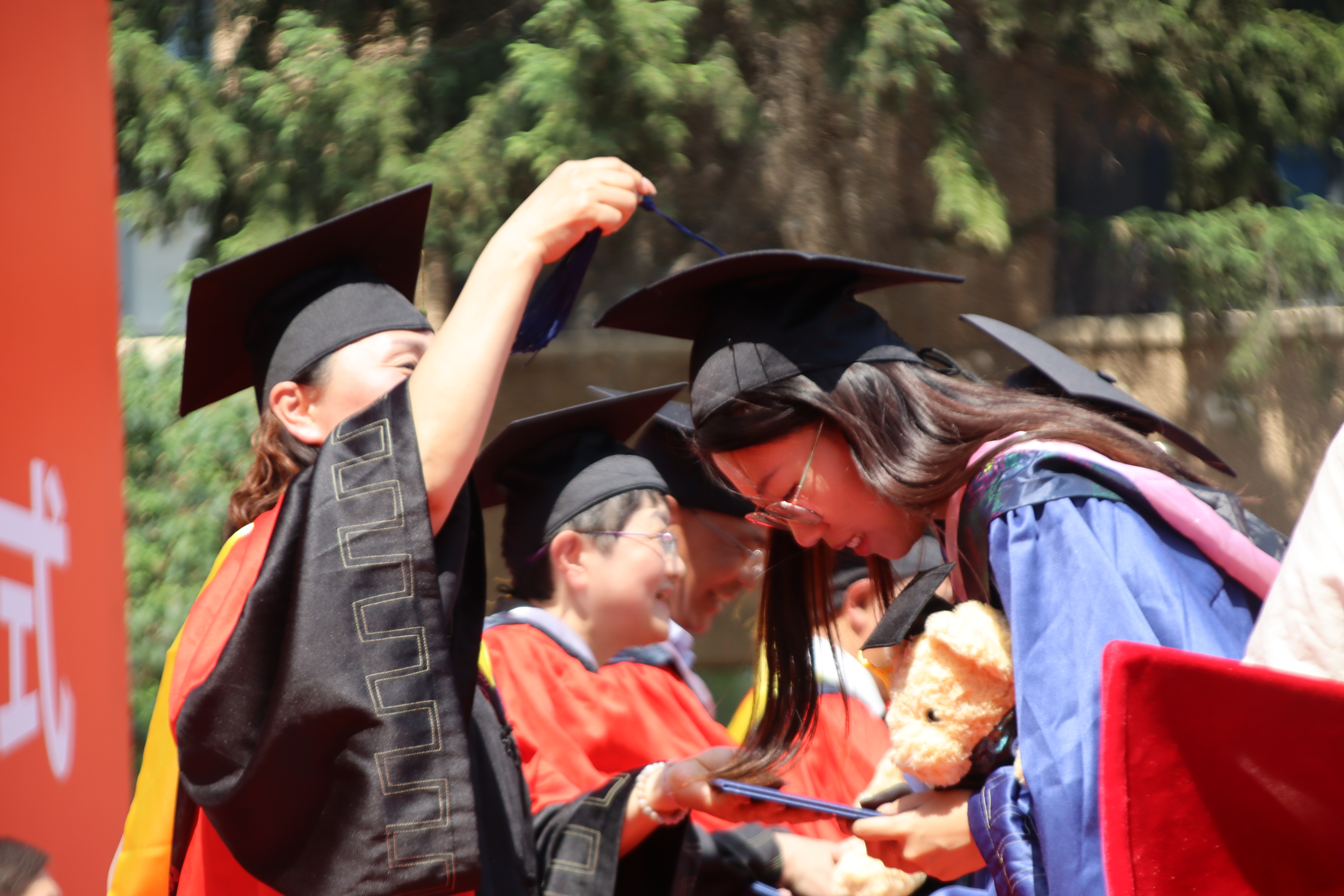 上午8时30分,全体毕业生身着学位服,整齐起立,摘下学位帽,同声高唱国歌。在庄严肃穆的国歌声中2024年毕业典礼正式拉开序幕。