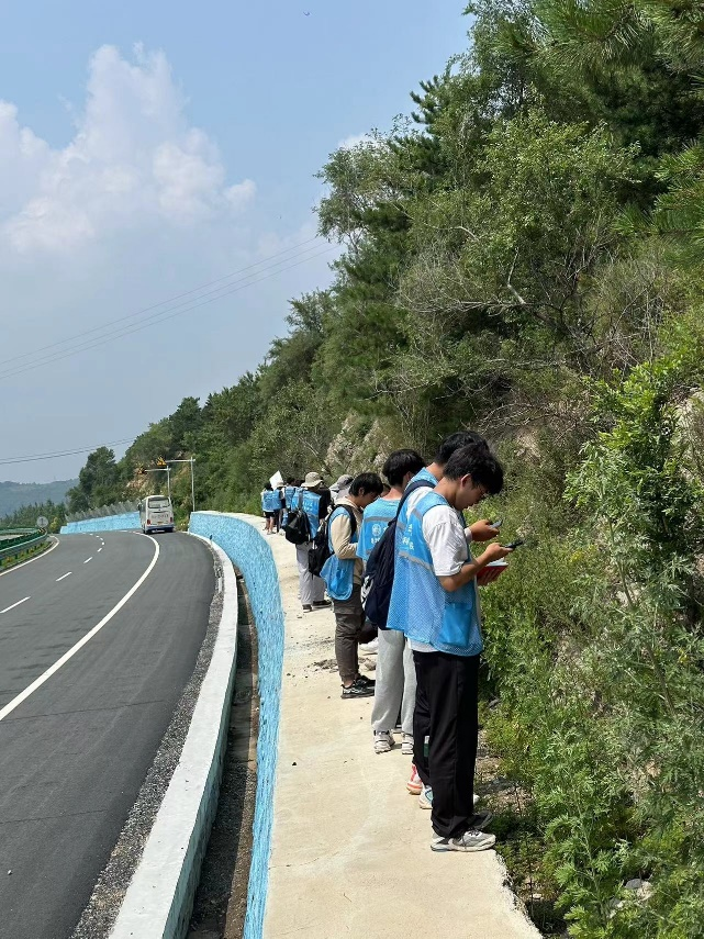 2023级长春周边认识实习队伍来到了四平市石岭镇,开始了新一天的野外实习。在实习老师的带领下,2023级全体本科生对该地区的典型岩石类型和常见构造现象进行了观察和学习。