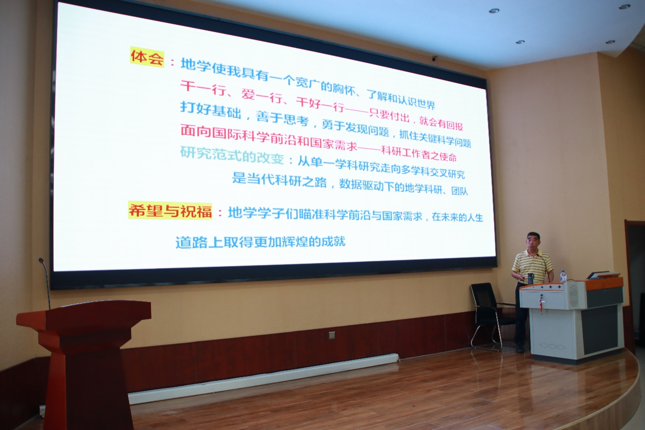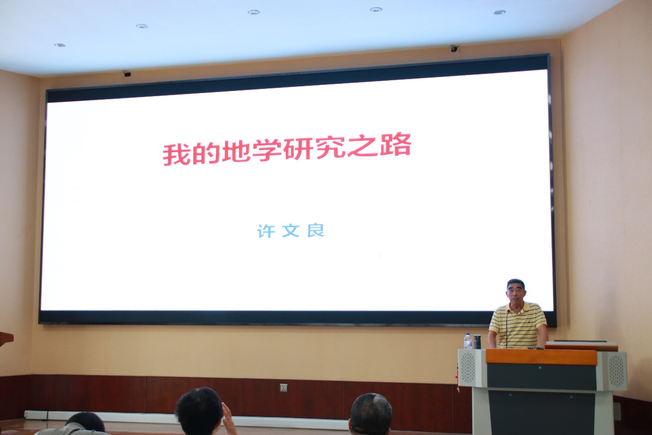 许文良教授作《我的地学研究之路》专题报告。报告会由实习队队长郑常青教授主持,部分实习基地师生听取了报告。