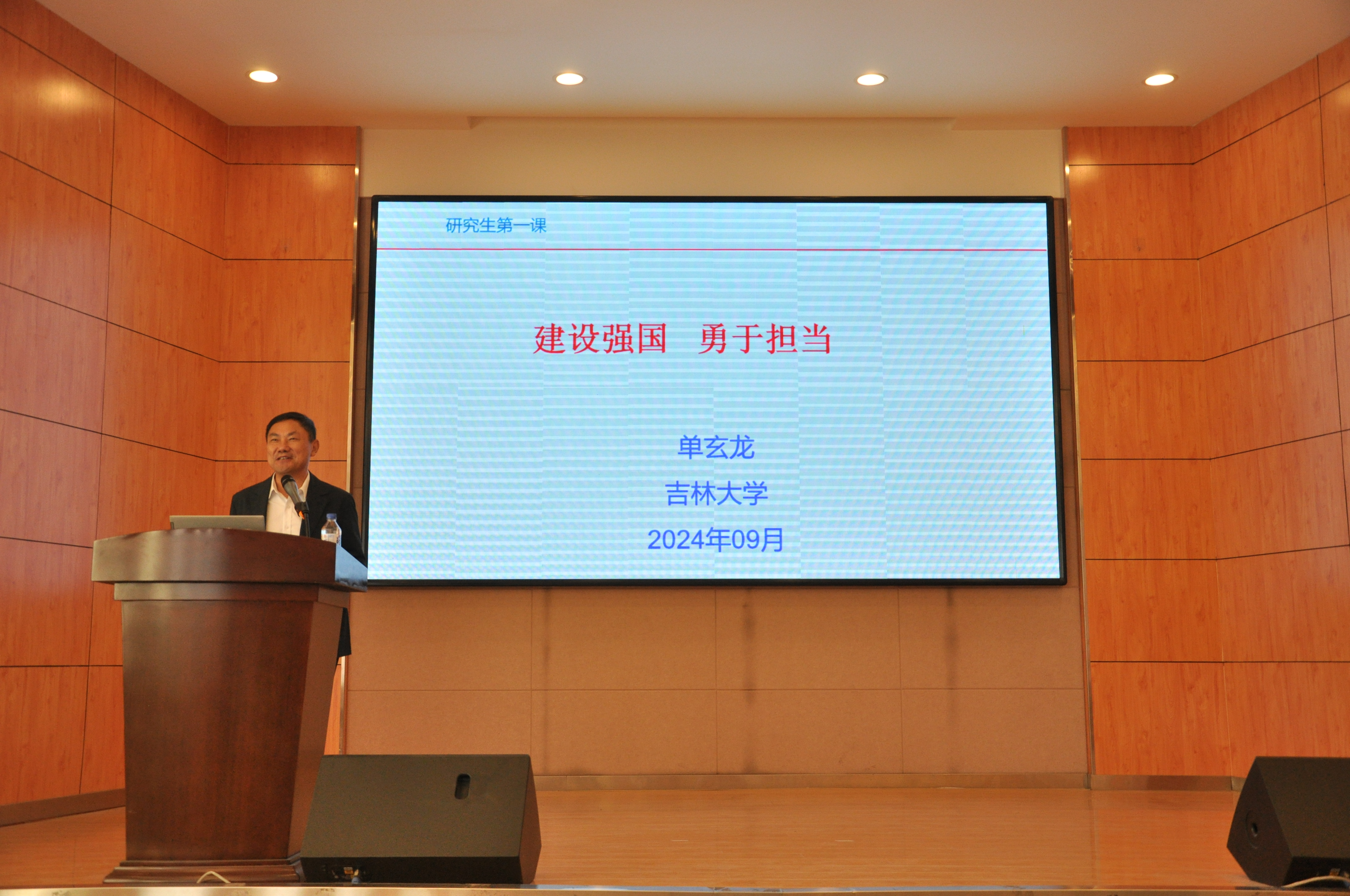 院长单玄龙在朝阳校区图书馆四楼报告厅为学院2024级研究生讲授了以“建设强国 勇于担当”为主题的“开学第一课”。活动由学院党委副书记马旭主持。
