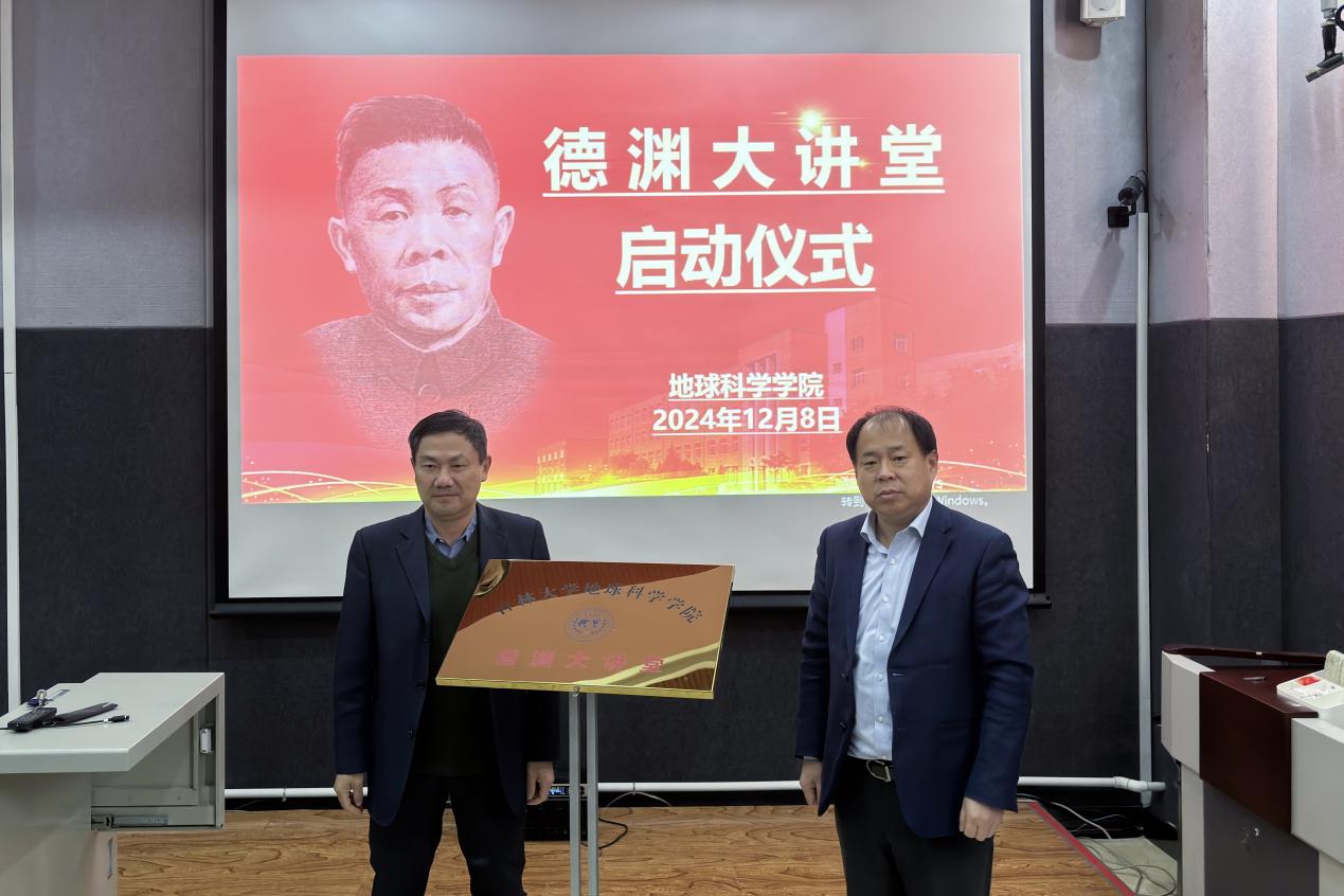 活动上,党委书记杨洲、院长单玄龙共同为“德渊大讲堂”揭牌。未来,学院将邀请知名校友、优秀人士积极开展人文素质教育讲座,通过成长经历分享,着力培养“品德高尚,学识渊博”的新一代地学人才,引导全院师生树立远大理想,推动新时代地学事业不断向前发展。