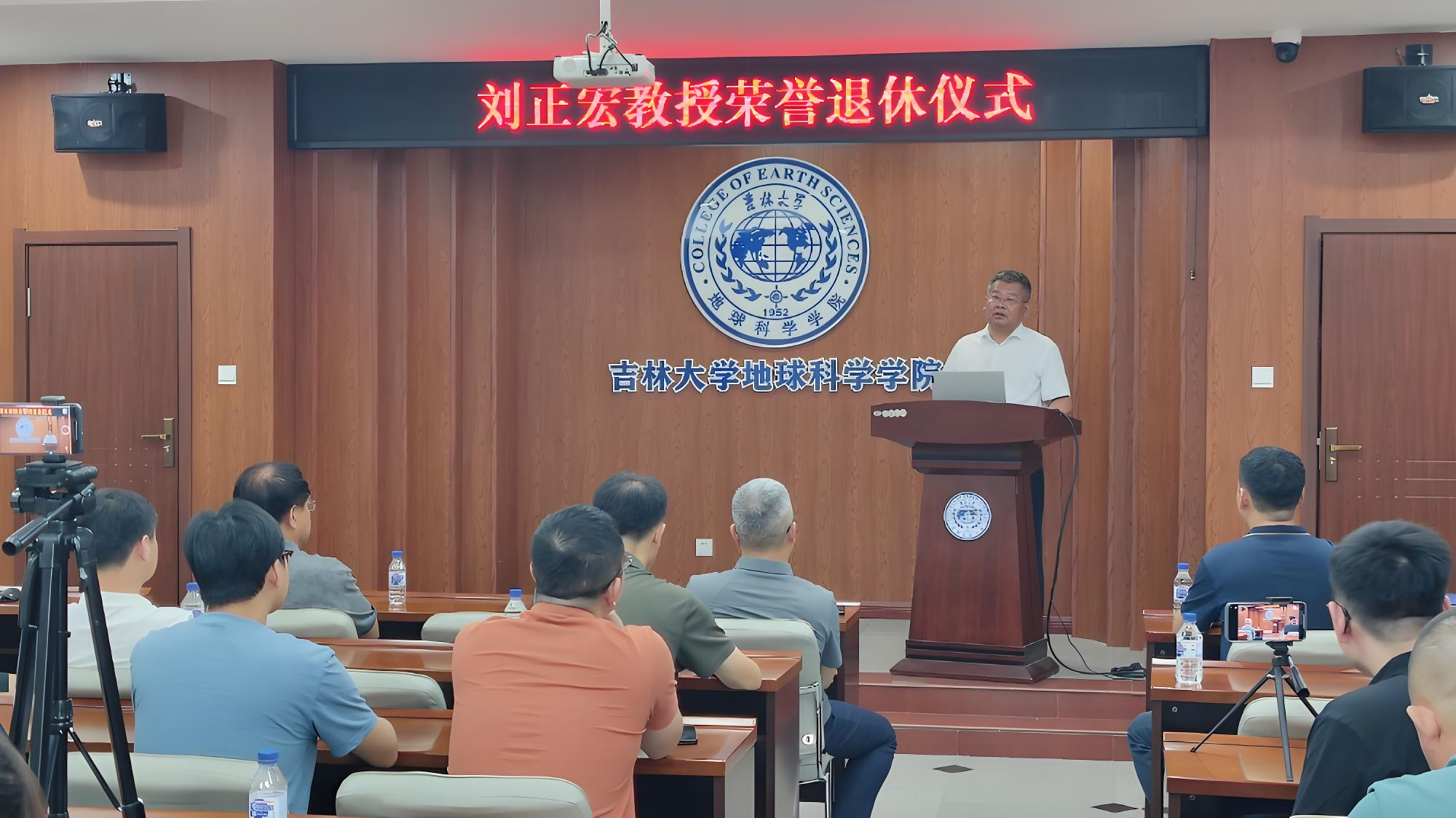仪式上,衣长涛书记发表了深情讲话。他指出,构造地质学教研室的老师们和刘正宏教授的学生们自发为刘老师举办这场荣休仪式,充分体现了大家发自内心地认同刘老师的高尚品格,肯定其突出贡献,感念其深厚师恩。有感于此,衣长涛书记提出了三点期望:一是传承。希望以刘正宏教授为代表的退休教师们,在身体和时间允许的情况下,继续关注并参与学院建设,指导年轻教师成长。他强调,传承是学校的重要职责,不仅要传承知识,更要传承前辈们做人做事的态度与风骨。这种精神传承将对年轻人产生深远影响,激励他们在各自岗位上不断取得新成绩、作出新贡献;二是敬业。希望构造地质学教研室的年轻教师以刘老师的荣休仪式为契机,在回顾自身求学与科研道路的同时,继续坚守初心、爱岗敬业、心系集体。要学习鸽子楼前辈们的精神,勇于开拓,积极进取;三是协作。学校和学院是大团队,科研组和教学组是小团队。团队协作是取得成果的前提,每位成员都应在团队中找准自己的定位,承担相应职责。希望老师们无论身处何种团队,都能积极扮演好自身角色,贡献力量。