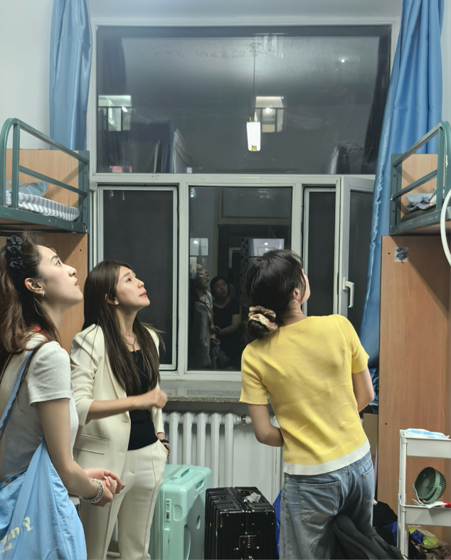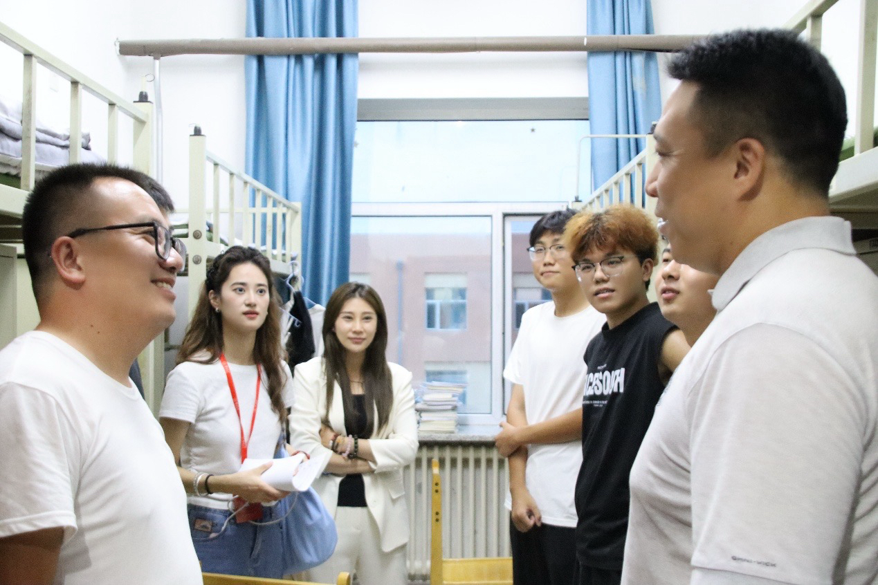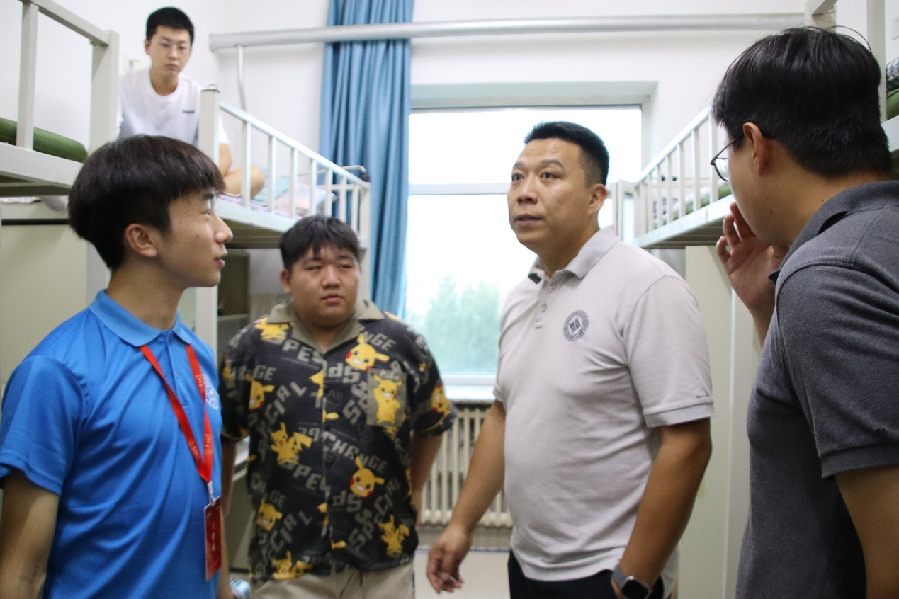 党委副书记李阳、学生工作办公室主任兼2025级辅导员韩旭、2024级辅导员宋梓豪、辅导员助理程肖琳共同前往新生宿舍北苑一公寓和南苑四公寓进行走访慰问,与新生及家长展开面对面交流,向同学们致以诚挚问候与新学期的美好期许,切实传递出学院对学子的深切关怀与暖心关切。