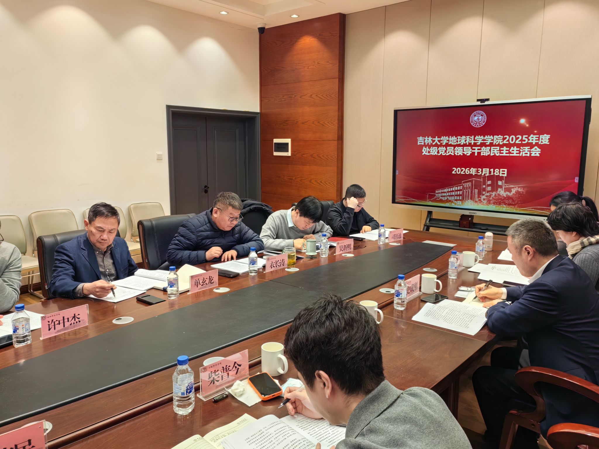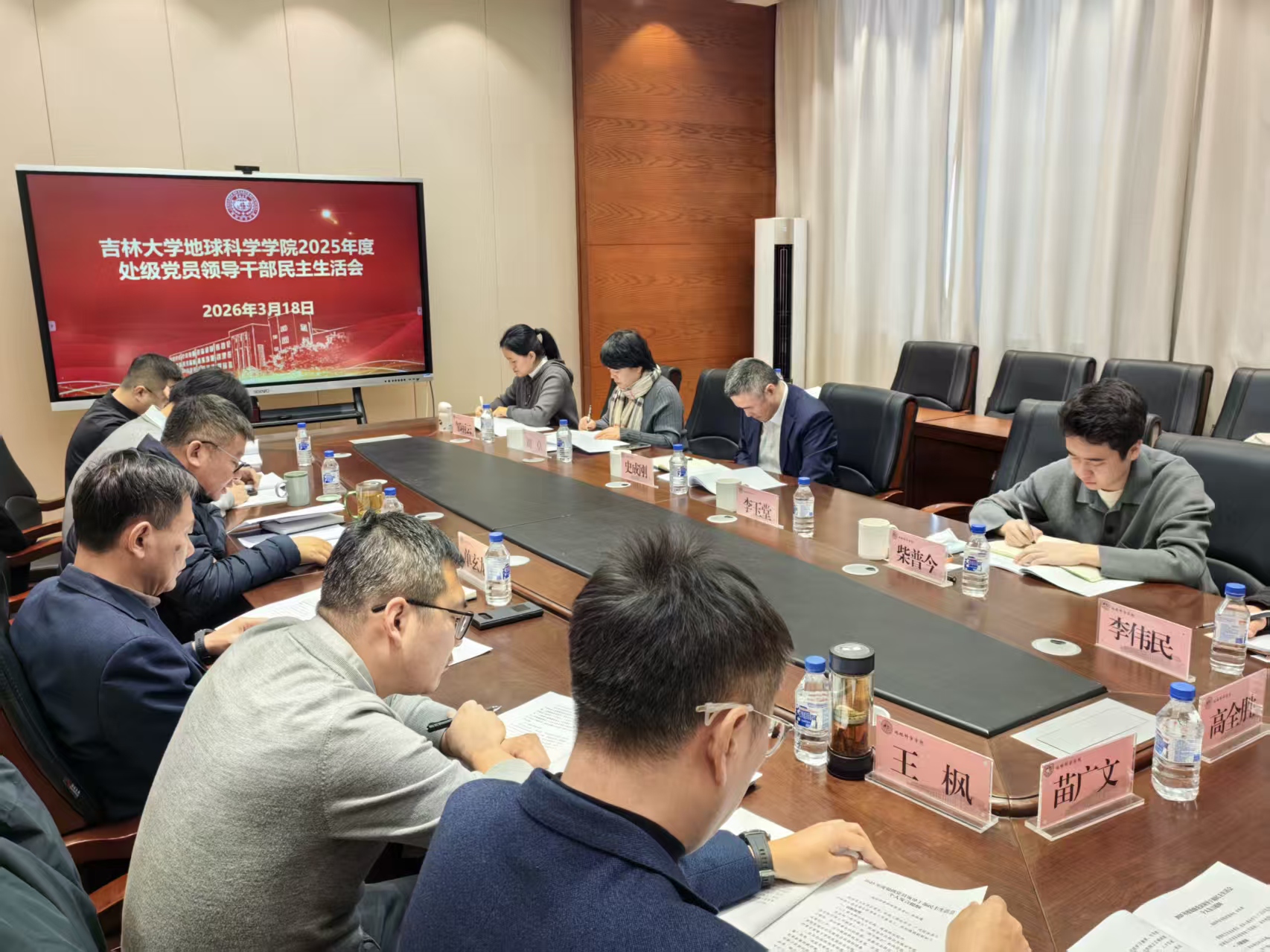 在鸽子楼召开2025年度处级党员领导干部民主生活会。学校第九督导组组长史成刚同志、副组长刘卓同志、成员邹丽云同志和联络员柴普今同志,党建工作联络员李玉堂同志到会指导。学院领导班子全体成员参会。会议由学院党委书记衣长涛主持。