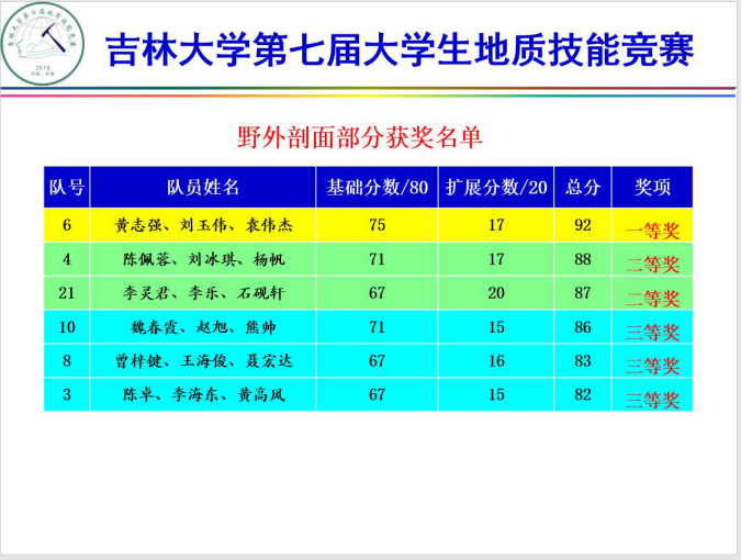 今年的第七届台湾a片 地质技能竞赛野外地质技能竞赛环节2018年5月26日进行,本环节竞赛共有来自台湾a片 、应用技术学院的22支代表队66人参加,最终6个组获奖。