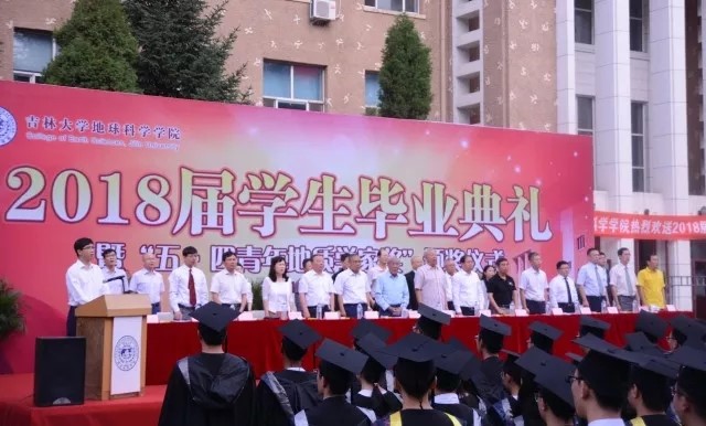 校歌》,接着进行了隆重的学位授予仪式,由任院长一一为博士毕业生、硕士毕业生、本科毕业生授予学位并合影。同学们有序的在场下排队,然后依次上台领取证书并与任院长合影。大家的脸上都露出了喜悦的笑容,即将毕业的同学们在这里为自己的学业生涯画上了一个圆满的句号。祝福每一位毕业生在今后的日子里前途无量,鹏程万里。随后,全体师生共唱《勘探队员之歌》。