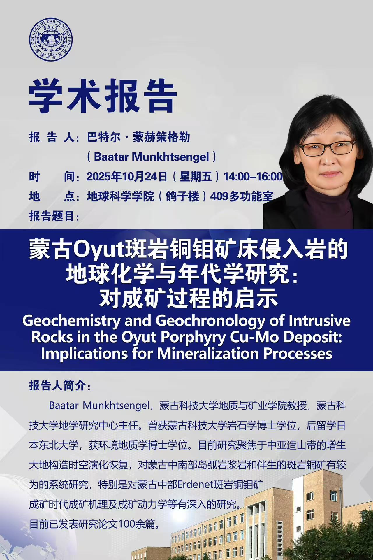 蒙古科技大学地学研究中心主任Baatar Munkhtsengel教授学术报告