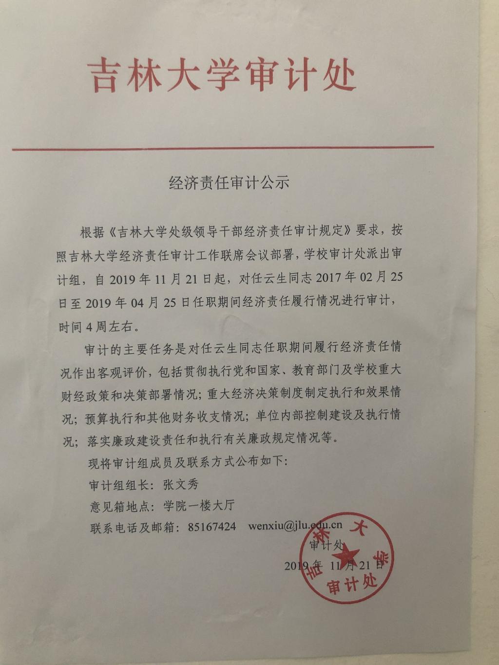 任云生同志离任审计公示