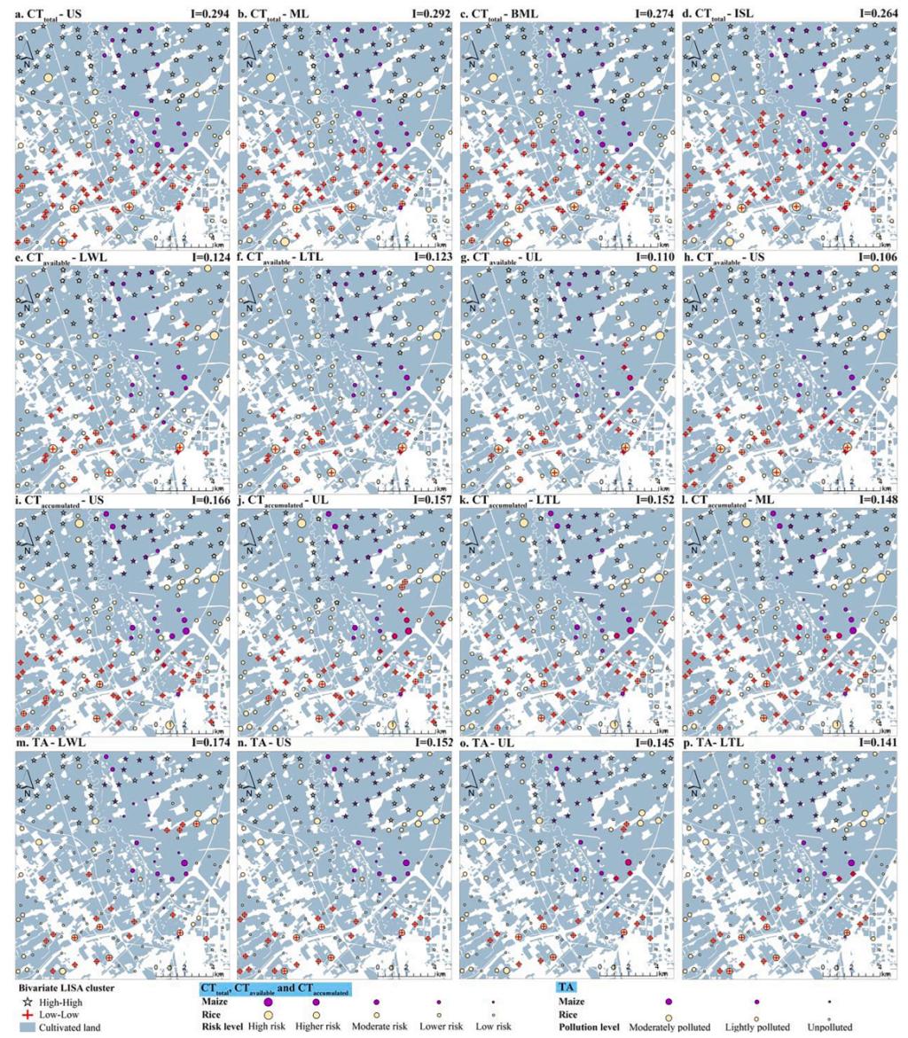 图3 城郊农田重金属污染评价结果与土地利用的Bivariate LISA聚类图