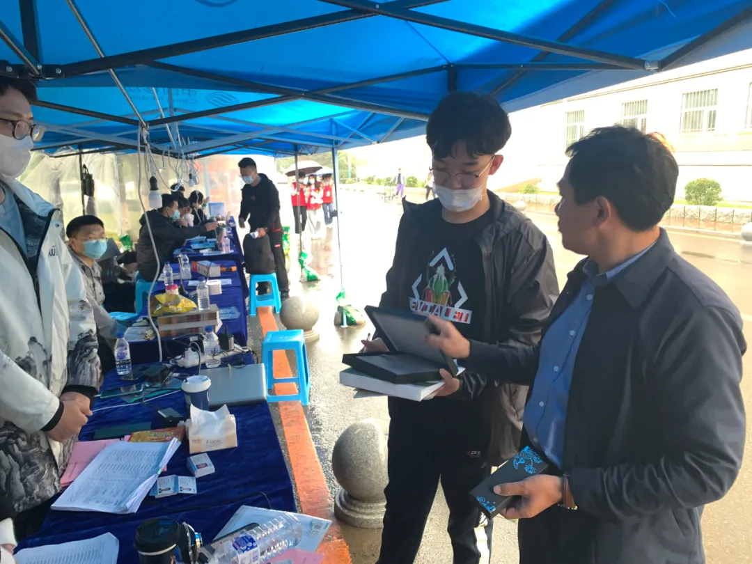 在迎新工作现场,学院党委书记杨洲、院长单玄龙、党委副书记马旭三位老师来到迎新工作一线,在与报到新生进行充分交流的同时为新生送上学院为他们精心准备的纪念品,用“满满的仪式感”让新生同学感受到学院的光辉历史和对他们的满心期许。