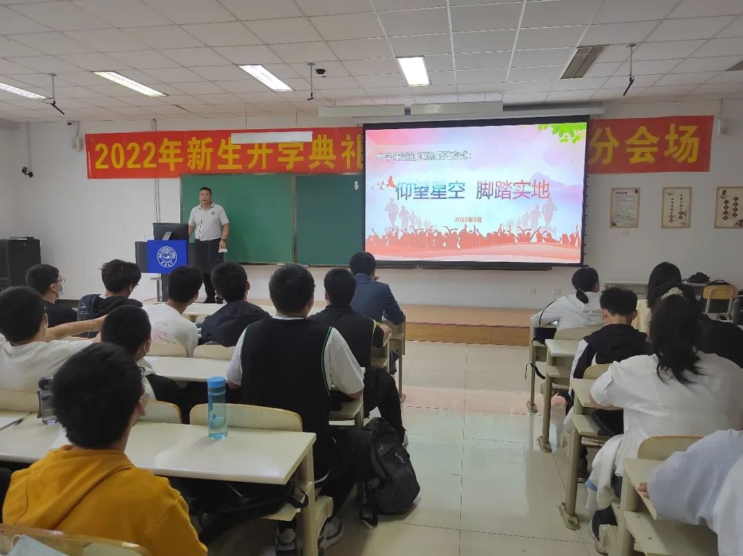 于李四光教学楼302室举行“仰望星空,脚踏实地”新生思政课,院党委副书记兼副院长李阳老师为2022级全体本科新生授课,2022级辅导员曲鹏展老师出席本次活动。