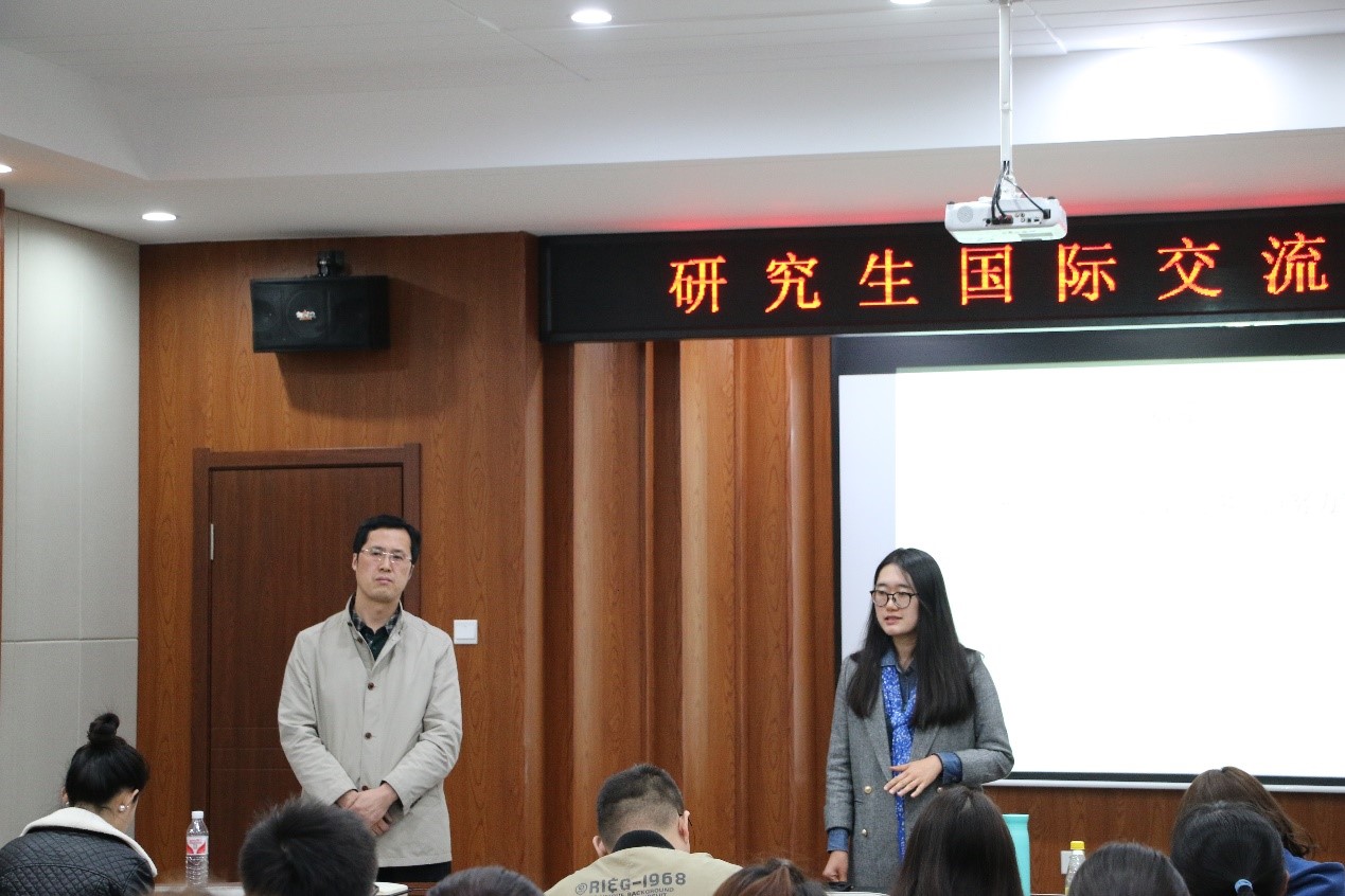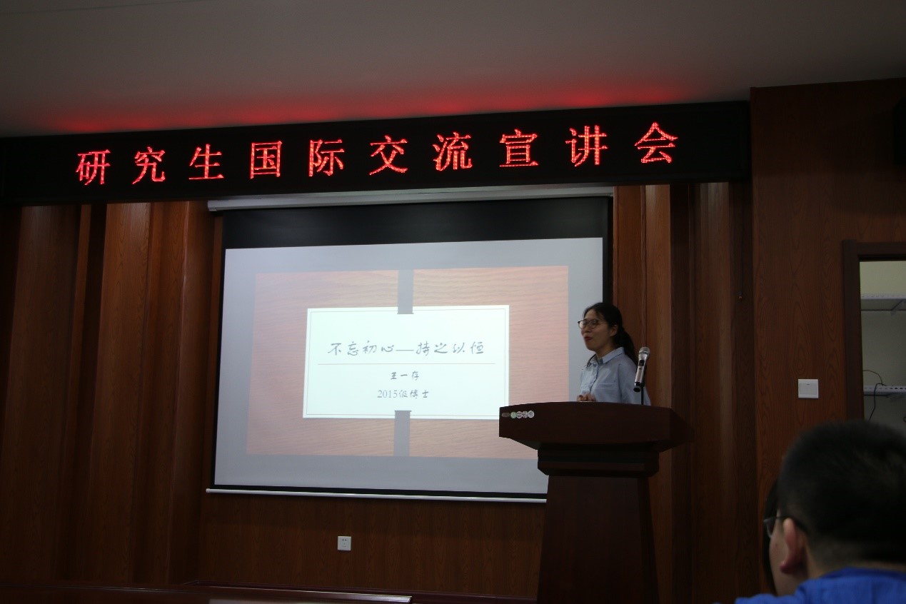 活动邀请了国家公派联合国实习生2016届校友徐政雪,国家公派联合培养博士2015级博士研究生徐久磊、王一存,台湾交换学习2015级硕士研究生常文博进行分享交流,本次交流会由杨德彬副院长主持。徐政雪为大家分享了申请联合国实习生、联合国志愿者的途径,以及参加联合国教科文组织期间进行的“国际水文计划”拉丁美洲及加勒比海地区项目组的经历。徐政雪通过在联合国实习感受到“人的成功更多地表现在爱与被爱”,并用自己从学生到联合国实习生再到贵州省侗族大寨公益组织创始人的经历,向大家展现了自己是如何通过国际交流锻炼了自己多方位的能力,为同学们未来的选择方向打开了更多的思路。