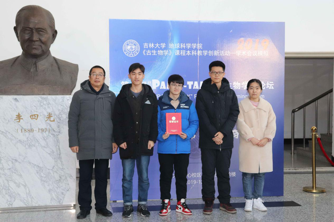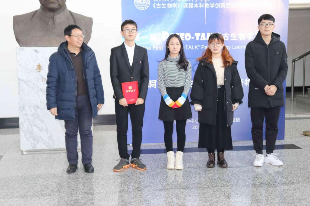 辅导员曲鹏展老师和古生物学课程团队的王旖旎老师,史骁老师,李晓波老师,李宁老师。