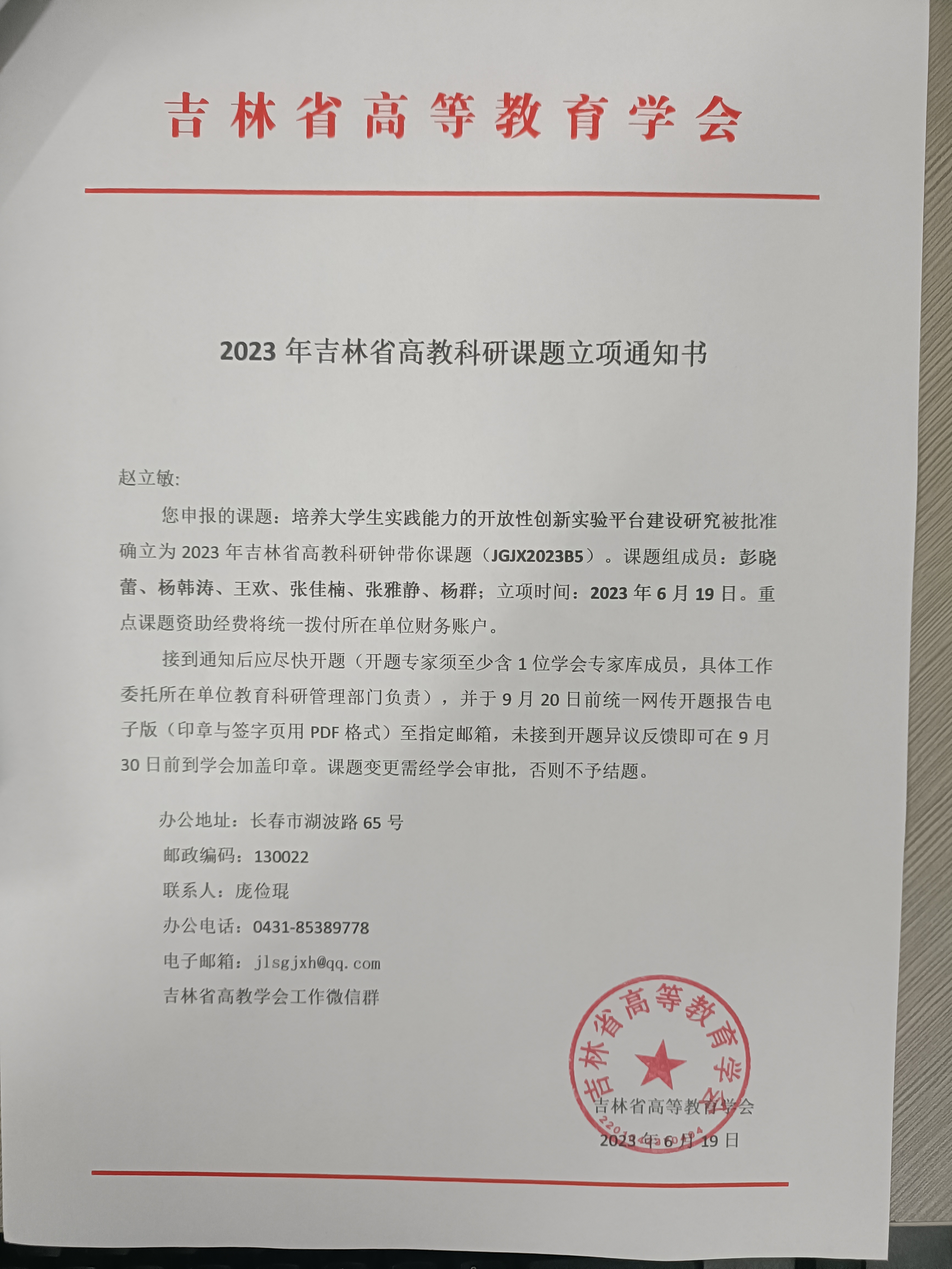 经各高校申报,省高教学会组织专家组初评、复评和终评,中心赵立敏负责的“培养大学生实践能力的开放性创新实验平台建设研究”项目,被确立为2023年台湾a片 高教科研课题重点项目,项目编号JGJX2023B5。2023年台湾a片 高教科研课题重点项目共立项58项,其中重点课题6项、重点自筹课题10项、一般课题42项。相关信息可在吉林省高等教育学会官方网站(//www.jlgjxh.com.cn)查询。