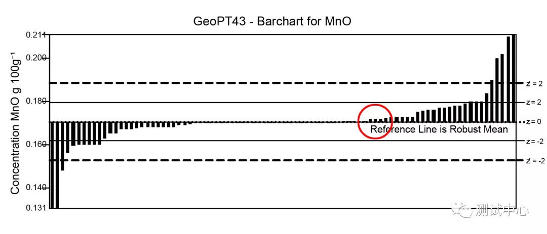 本次测试需要参赛单位报出的10个常量元素(SiO2, TiO2, Al2O3, Fe2O3T, MnO, MgO, CaO, Na2O,K2O)测试结果。东北亚矿产资源评价重点实验室的测试结果合格率达到100%,测试结果Z值最高为0.26 (Z<2为合格),在全球128家参与测试的科研院所中位列榜首。