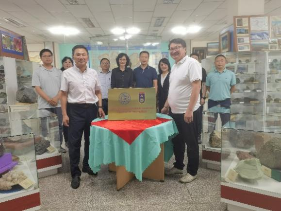 院长单玄龙和蒙古科技大学地质与采矿工程学院院长哈瓦尔·博洛特在蒙古科技大学地质博物馆共同为中蒙国际地学野外实践教学基地揭牌。代表团参观了蒙古科技大学地质博物馆。